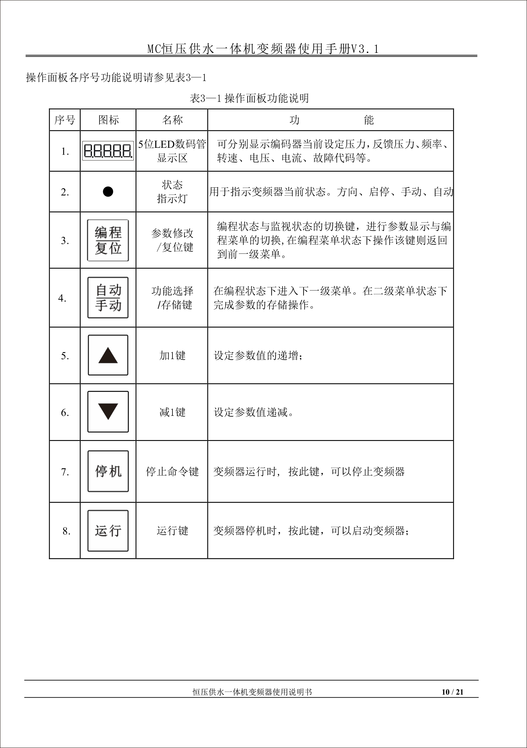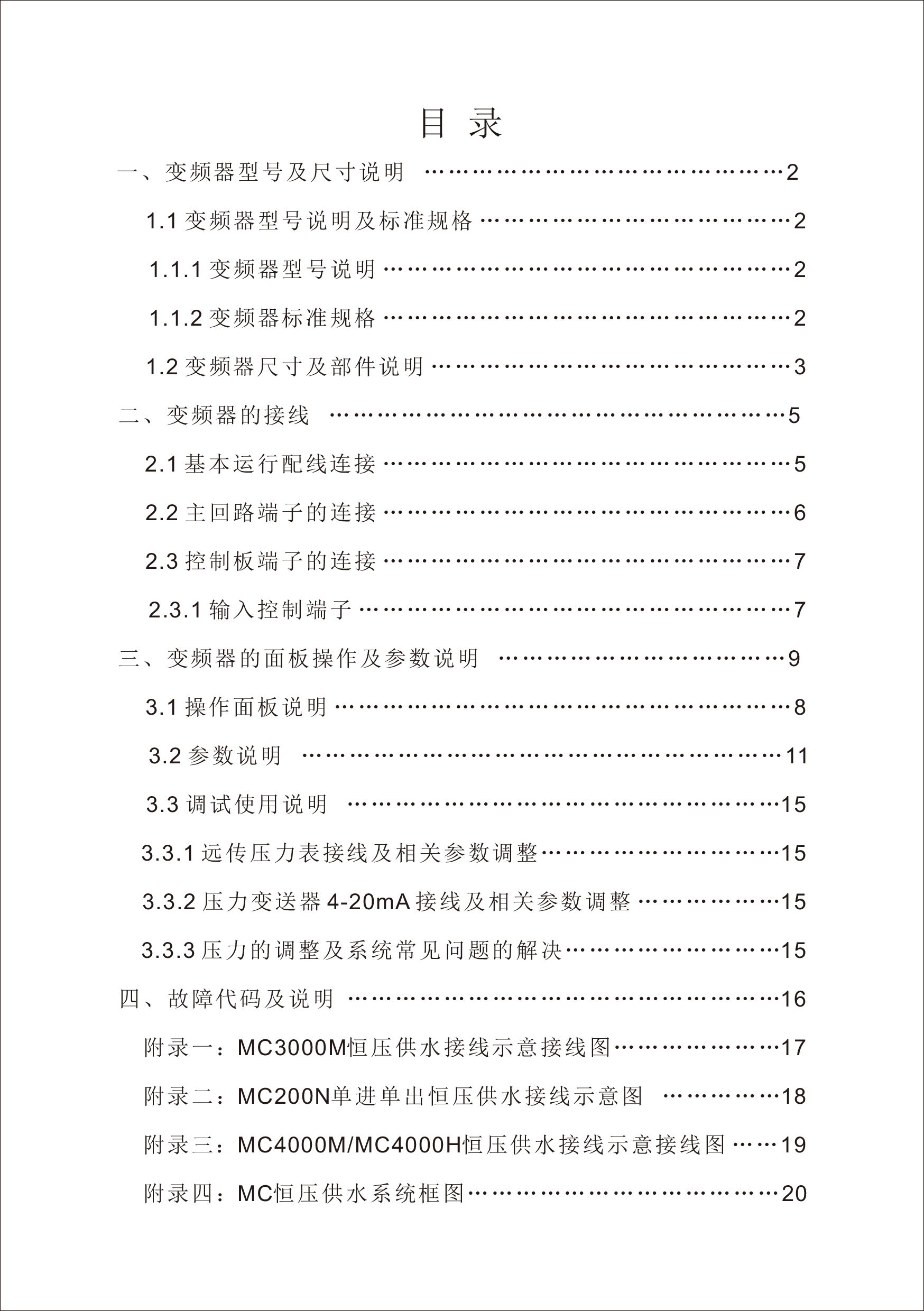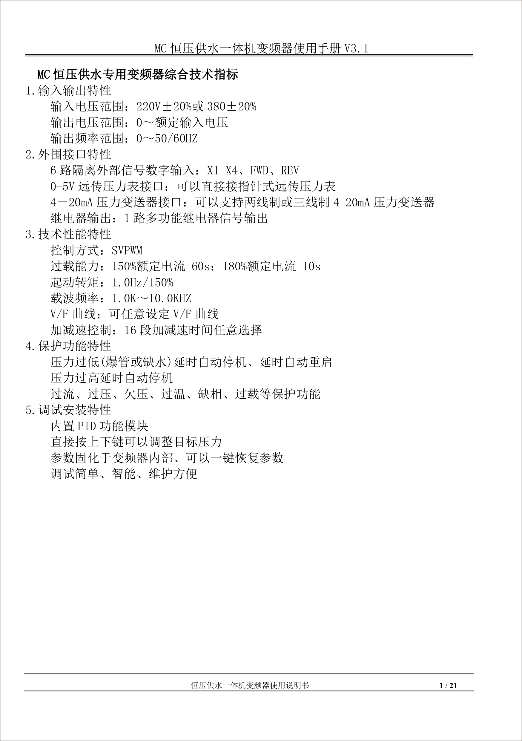 MC恒壓供水一體機變頻器使用手冊V31-181205