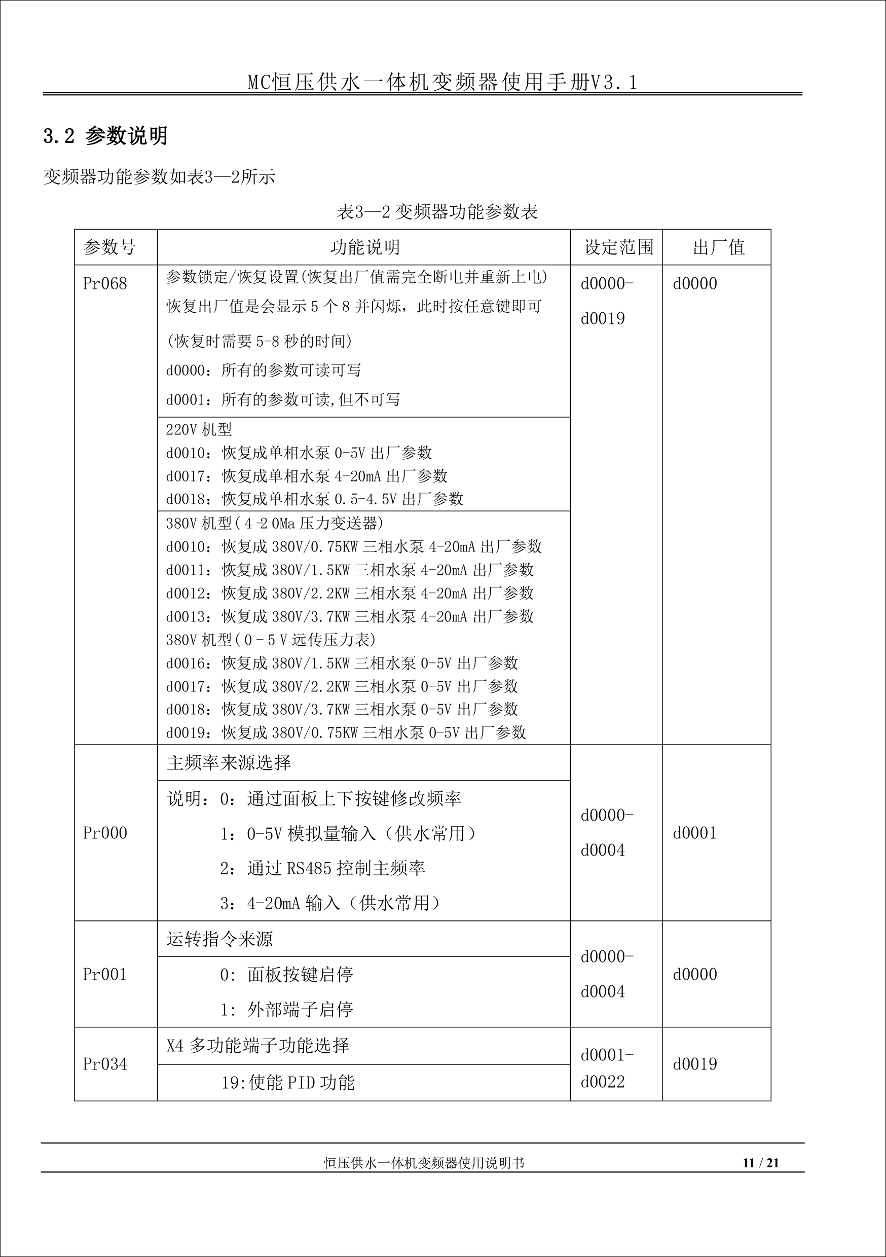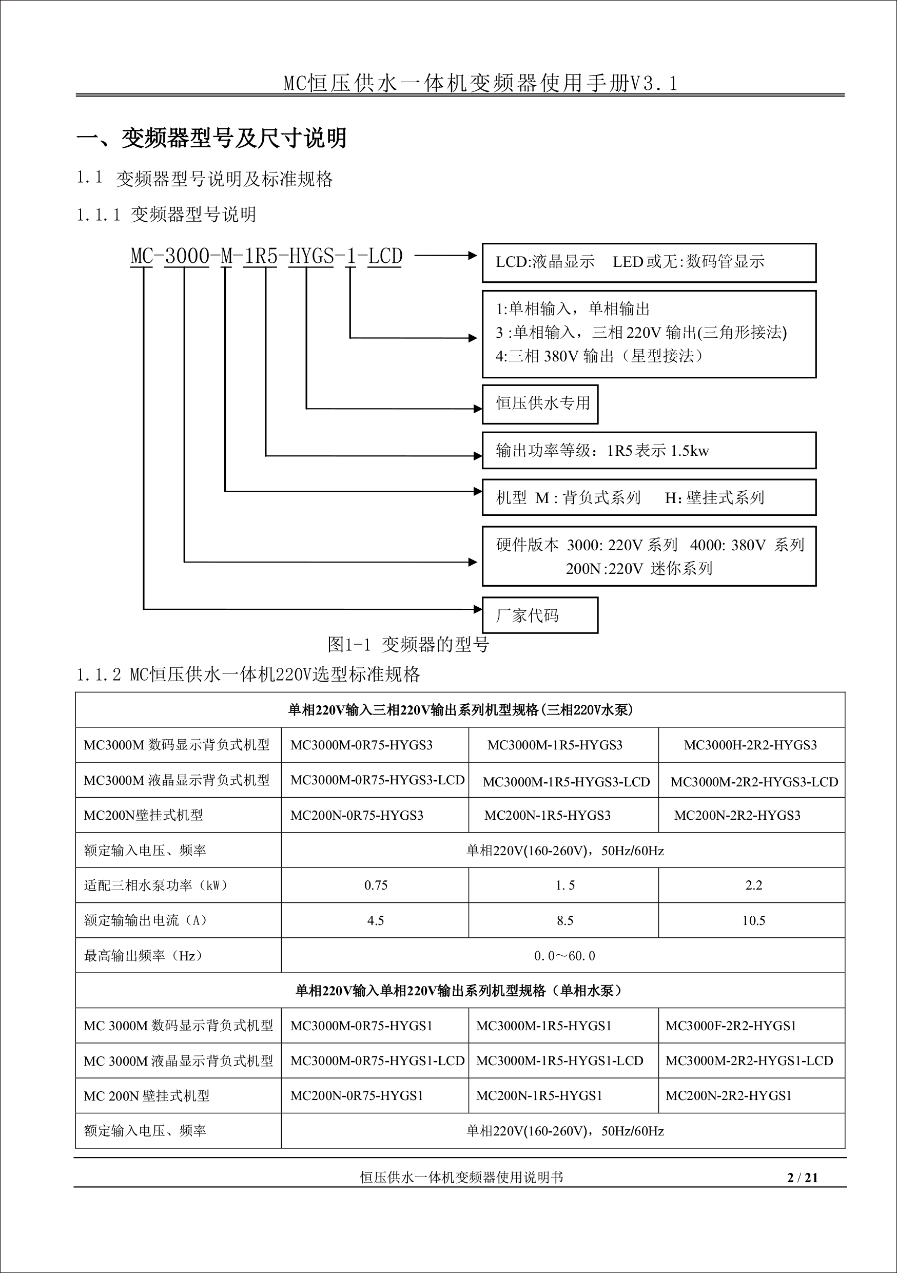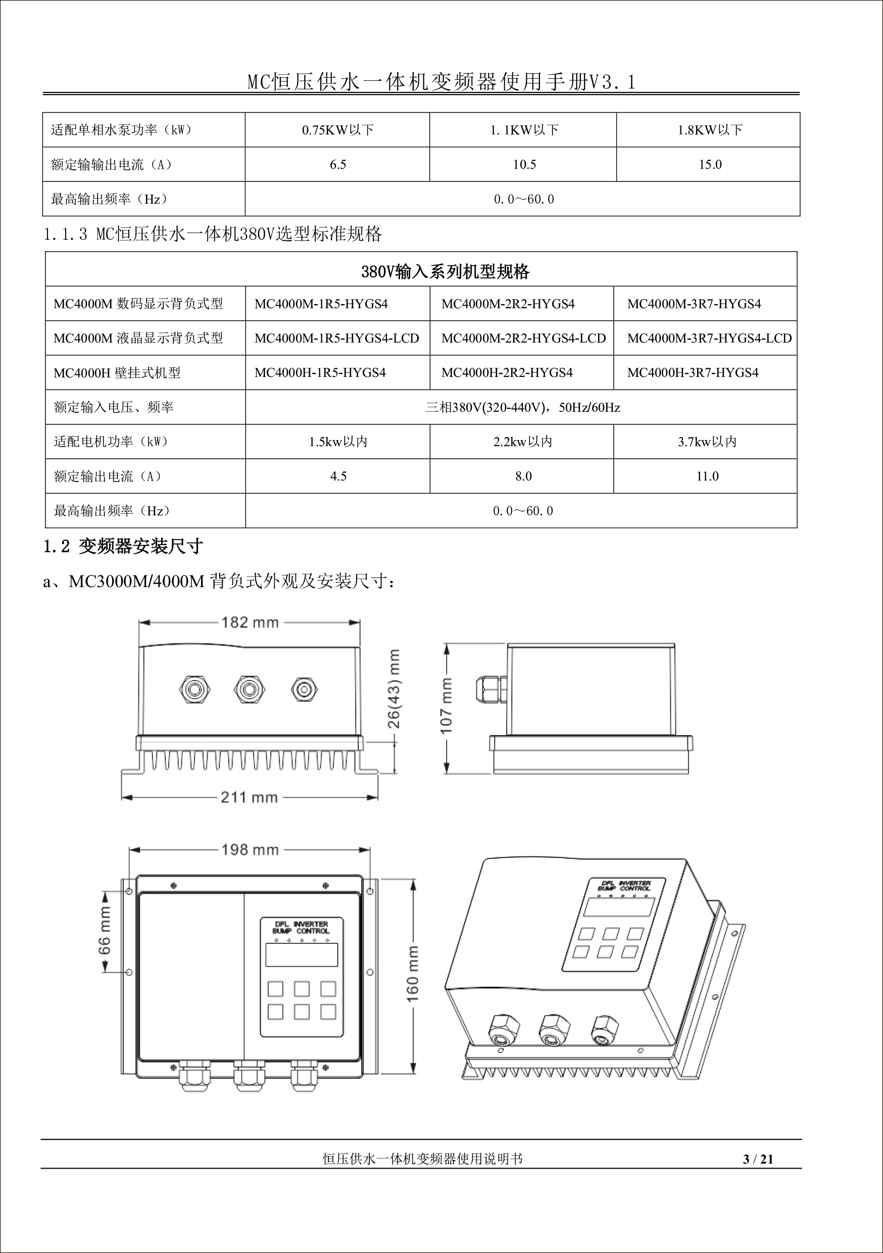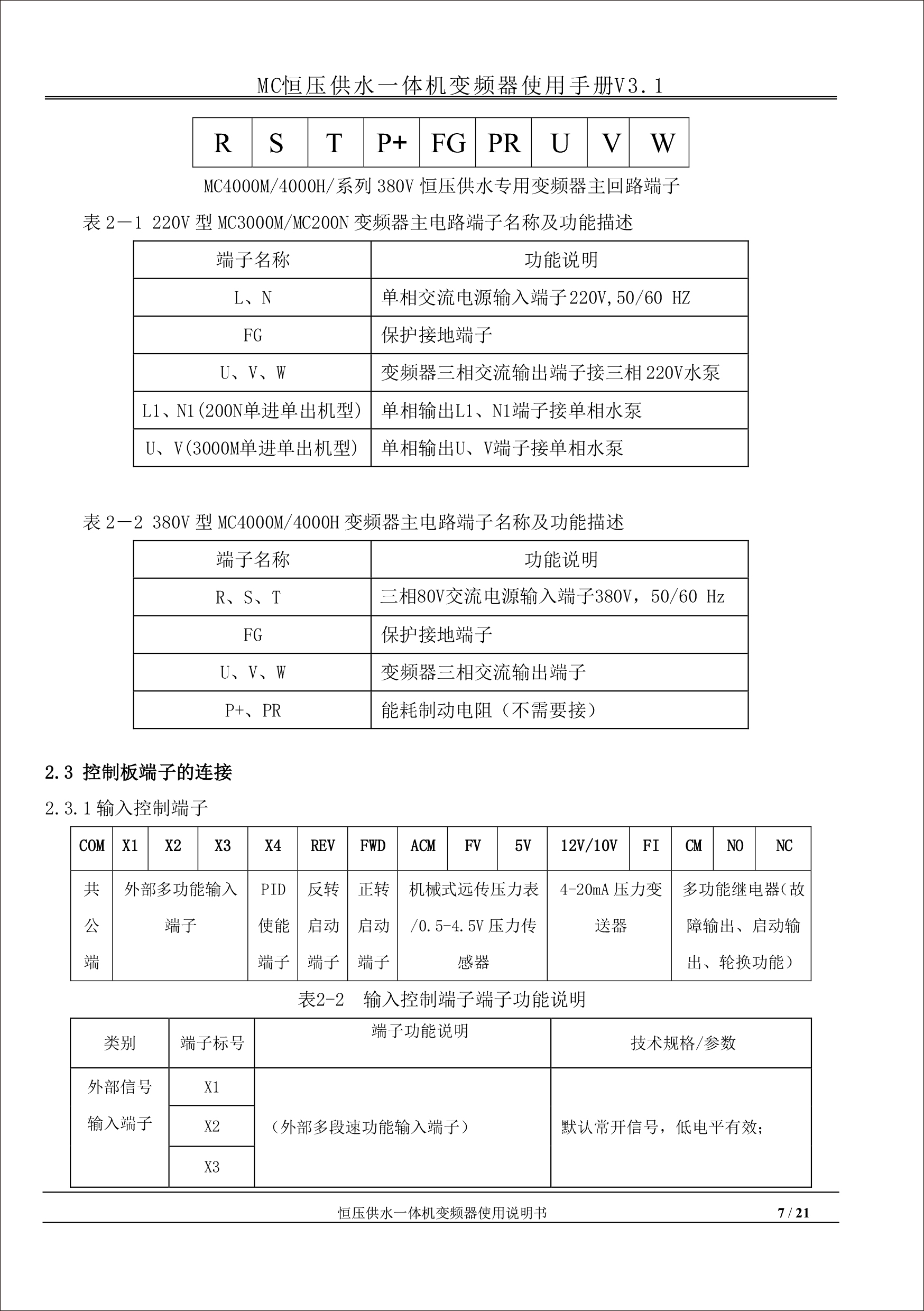 MC恒壓供水一體機變頻器使用手冊V31-181205